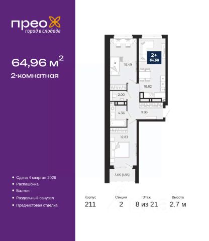 Просторная 2-комн. квартира с предчистовой отделкой в ЖК "Прео" на 10 этаже. Общая площадь: 56.08 кв.м., жилая: 22.33 кв.м., площадь просторной кухни-столовой: 16.04 кв.м. Комнаты изолированные, все окна выходят на одну сторону. В квартире один раздельный санузел. Высота потолков 2.7 м. Дом монолитный, черырехподъездный, переменной этажности, от 14 до 21 этажей. Квартира находится во 2-й секции высотой 21 этаж в корпусе 211. На этаже 10 квартир. В подъезде 1 пассажирский и 1 грузовой лифт. Окончание строительства - 4 квартал 2026 года. Оформление сделки по договору долевого участия. Преображенский — один из самых привлекательных районов для жизни! Это полностью самостоятельный жилой район с точки зрения инфраструктуры. Преображенский находится между Московским и Червишевским трактами в квартале улиц Закалужская — Вьюжная — Александра Протозанова. Не нужно ждать, когда появится инфраструктура — переезжайте на всё готовое. Вблизи расположены действующие школа и детский сад. В этом году откроется еще один сад, а в следующем году — школа. По соседству с Преображенским запланировано строительство городского парка "Комарово" площадью 38 гектар. За 10 минут можно доехать на автомобиле до крупных ТРЦ: "Лента", "Кристалл", "Леруа Мерлен", "Метро" и "Ашан". С 2018 года в районе открыт Соседский центр — пространство, созданное для формирования добрососедской среды, совместного досуга, общения и реализации соседских инициатив. Здесь проходят встречи соседей, а также сами жители района организовывают мероприятия. Организатором такого события может стать любой желающий. В квартирах выполнена качественная предчистовая отделка. Гладкие стены с финишным выравниванием по маякам. Ровный потолок для установки натяжного потолка. Установлены пятикамерные окна с двойным стеклопакетом (3 стекла). Дизайнерские холлы с видеонаблюдением, безбарьерным и прозрачным входом всегда светло и спокойно. На первом этаже есть просторные колясочные, где все жители могут оставлять свои коляски и велосипеды. В Преображенском есть всё, что нужно для активного отдыха и занятий спортом. Мы сделали большое футбольное поле с безопасным покрытием. Также установили хоккейный корт, который оборудован по всем необходимым стандартам. Во дворах можно делать упражнения на специальных площадках с турниками. Весь район мы обустроили велодорожками, которые связаны в единый маршрут. У нас есть сухие фонтаны, бьющие из земли, деревья, веревки, сетки, скалодром, газон, песок и резинка — осталось просто дать своему ребенку право на свободную игру. По-настоящему хорошие дворы — это те, которые дети предпочитают соцсетям и телевизору. Аккредитация в банках: ОАО "Альфа-Банк", ПАО "Банк Уралсиб", ПАО Банк "ВТБ", ПАО "Газпромбанк", "Сбербанк России" и других. #ZS0Ad5