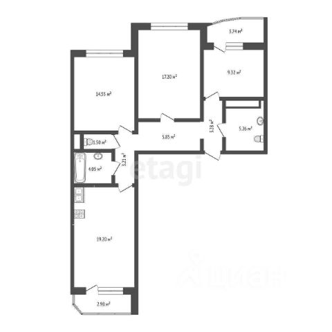 3-комн. квартира с предчистовой отделкой в ЖК "Республики 205" на 9 этаже. Общая площадь: 78.15 кв.м., жилая: 37.4 кв.м., площадь просторной кухни-гостиной: 18.6 кв.м. Квартира - распашонка, без проходных комнат, окна выходят на paзные стороны дома. В квартире один балкон и одна лоджия, один совмещенный и один раздельный санузел. Высота потолков 2.6 м.
