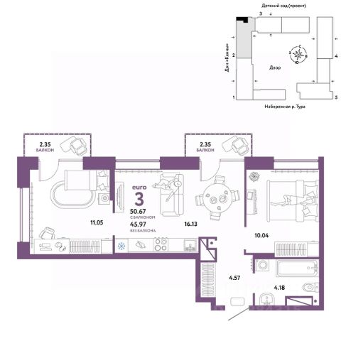 Продаётся квартира площадью 52.00 м2 в жилом комплексе "Айрис". Квартира находится на 19 этаже, жилая площадь квартиры 28.20 м2, площадь просторной кухни — 8.90 м2. Среди особенностей планировки — изолированные комнаты с окнами на одну сторону, 1 совмещённый санузел. Срок сдачи — III кв. 2027 Жилой комплекс "Айрис" — это: - фиджитал-квартал в Тюмени - дома высотой от 7 до 25 этажей - квартиры с системой "Умный дом" - цифровые технологии как элемент благоустройства Окружение В нескольких минутах ходьбы от дома — парк "Комарово" с волейбольной площадкой, открытым кинотеатром, зонами для барбекю и катком. Неподалеку от Airis находится центр иппотерапии, где можно покататься на лошадях и взять уроки верховой езды. На территории Airis появится собственный парк с прогулочными аллеями. Инфраструктура В 5-10 минутах от квартала открыты 2 детских сада и гимназия. На шопинг можно отправиться в торговые комплексы "Колумб" и "Кристалл" — они находятся недалеко от дома. Благоустройство Уютный двор — приватное пространство для жителей. В беседках можно будет почитать книгу в тишине, а в тени деревьев устроиться на пикник. На крыше многоуровневого паркинга будет лаунж-зона с кинотеатром, баскетбольная площадка и воркаут-пространство, где можно позаниматься с виртуальным тренером — достаточно отсканировать код. Лобби Интерьеры лобби выполнены в пастельных тонах с элементами фиджитал-решений. Для отдыха и ожидания гостей создана лаунж-зона. Также есть гостевые санузлы. Колясочные Возвращайтесь налегке после прогулки с малышом — оставить коляску можно в специальном помещении на первом этаже. Кладовые Для сезонных и габаритных вещей предусмотрены отдельные кладовые на цокольном этаже. В каждом помещении уже проведено электричество и выполнена стяжка пола. Паркинг На территории — два многоуровневых наземных паркинга. Один из них примыкает к домам — из него можно напрямую пройти в парадные. Планировки Планировки квартала — от компактной студии до сити-хауса с собственным палисадником — соответствуют любым жизненным сценариям. Можно выбрать квартиры с террасами и готовыми дизайнерскими интерьерами. Продается 3-комнатная квартира 50 м2 в Тюмени.