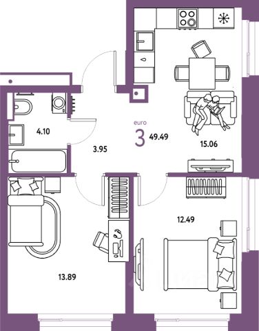 Продаётся квартира площадью 52 м2 в жилом комплексе "Айрис". Квартира находится на 14 этаже, жилая площадь квартиры 28.2 м2, площадь просторной кухни — 8.9 м2. Среди особенностей планировки — изолированные комнаты с окнами на одну сторону, 1 совмещённый санузел. Срок сдачи — III кв. 2027 Жилой комплекс "Айрис" — это: - фиджитал-квартал в Тюмени - дома высотой от 7 до 25 этажей - квартиры с системой "Умный дом" - цифровые технологии как элемент благоустройства Окружение В нескольких минутах ходьбы от дома — парк "Комарово" с волейбольной площадкой, открытым кинотеатром, зонами для барбекю и катком. Неподалеку от Airis находится центр иппотерапии, где можно покататься на лошадях и взять уроки верховой езды. На территории Airis появится собственный парк с прогулочными аллеями. Инфраструктура В 5-10 минутах от квартала открыты 2 детских сада и гимназия. На шопинг можно отправиться в торговые комплексы "Колумб" и "Кристалл" — они находятся недалеко от дома. Благоустройство Уютный двор — приватное пространство для жителей. В беседках можно будет почитать книгу в тишине, а в тени деревьев устроиться на пикник. На крыше многоуровневого паркинга будет лаунж-зона с кинотеатром, баскетбольная площадка и воркаут-пространство, где можно позаниматься с виртуальным тренером — достаточно отсканировать код. Лобби Интерьеры лобби выполнены в пастельных тонах с элементами фиджитал-решений. Для отдыха и ожидания гостей создана лаунж-зона. Также есть гостевые санузлы. Колясочные Возвращайтесь налегке после прогулки с малышом — оставить коляску можно в специальном помещении на первом этаже. Кладовые Для сезонных и габаритных вещей предусмотрены отдельные кладовые на цокольном этаже. В каждом помещении уже проведено электричество и выполнена стяжка пола. Паркинг На территории — два многоуровневых наземных паркинга. Один из них примыкает к домам — из него можно напрямую пройти в парадные. Планировки Планировки квартала — от компактной студии до сити-хауса с собственным палисадником — соответствуют любым жизненным сценариям. Можно выбрать квартиры с террасами и готовыми дизайнерскими интерьерами. Продается 3-комнатная квартира 50 м2 в Тюмени.