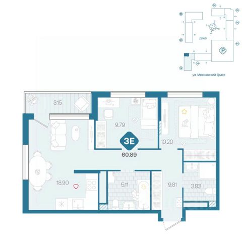 Продаётся квартира площадью 60.6 м2 в жилом комплексе "Айрис". Квартира находится на 2 этаже, жилая площадь квартиры 30.8 м2, площадь просторной кухни — 8.8 м2. Среди особенностей планировки — изолированные комнаты с окнами на одну сторону, 1 совмещённый санузел. Срок сдачи — III кв. 2027 Жилой комплекс "Айрис" — это: - фиджитал-квартал в Тюмени - дома высотой от 7 до 25 этажей - квартиры с системой "Умный дом" - цифровые технологии как элемент благоустройства Окружение В нескольких минутах ходьбы от дома — парк "Комарово" с волейбольной площадкой, открытым кинотеатром, зонами для барбекю и катком. Неподалеку от Airis находится центр иппотерапии, где можно покататься на лошадях и взять уроки верховой езды. На территории Airis появится собственный парк с прогулочными аллеями. Инфраструктура В 5-10 минутах от квартала открыты 2 детских сада и гимназия. На шопинг можно отправиться в торговые комплексы "Колумб" и "Кристалл" — они находятся недалеко от дома. Благоустройство Уютный двор — приватное пространство для жителей. В беседках можно будет почитать книгу в тишине, а в тени деревьев устроиться на пикник. На крыше многоуровневого паркинга будет лаунж-зона с кинотеатром, баскетбольная площадка и воркаут-пространство, где можно позаниматься с виртуальным тренером — достаточно отсканировать код. Лобби Интерьеры лобби выполнены в пастельных тонах с элементами фиджитал-решений. Для отдыха и ожидания гостей создана лаунж-зона. Также есть гостевые санузлы. Колясочные Возвращайтесь налегке после прогулки с малышом — оставить коляску можно в специальном помещении на первом этаже. Кладовые Для сезонных и габаритных вещей предусмотрены отдельные кладовые на цокольном этаже. В каждом помещении уже проведено электричество и выполнена стяжка пола. Паркинг На территории — два многоуровневых наземных паркинга. Один из них примыкает к домам — из него можно напрямую пройти в парадные. Планировки Планировки квартала — от компактной студии до сити-хауса с собственным палисадником — соответствуют любым жизненным сценариям. Можно выбрать квартиры с террасами и готовыми дизайнерскими интерьерами.