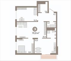 Просторная полноценная трехкомнатная квартира станет настоящим оазисом комфорта и уюта для большой семьи. Эта квартира не просто место для жизни — это пространство, в котором возможно наслаждаться каждой деталью, созданной для удобства и спокойствия. Одна из главных особенностей данной квартиры — это большие светлые комнаты, каждая из которых наполнена атмосферой тепла и гармонии. Просторные спальни обеспечивают комфортное пространство для отдыха и личного времени, где каждый член семьи сможет создать свою уникальную зону уюта. Два раздельных санузла — обеспечивают дополнительный комфорт, но и избавляют от утренней суеты. Прихожая квартиры — это не просто входное пространство, а настоящая находка для хранения. Здесь можно установить два вместительных шкафа, что позволит организовать идеальный порядок и максимально эффективно использовать доступное пространство. Эта трёхкомнатная квартира прекрасно сочетает в себе функциональность, стиль и комфорт, создавая идеальные условия для жизни. Уникальная планировка, большие помещения и возможность организации хранения делают её настоящим сокровищем для тех, кто ценит удобство и пространство. Продается 3-комнатная квартира 70 м2 в Тюменской области.