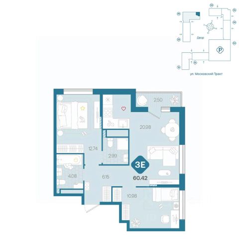 Продаётся квартира площадью 54.80 м2 в жилом комплексе "Айрис". Квартира находится на 3 этаже, жилая площадь квартиры 30.80 м2, площадь просторной кухни — 8.80 м2. Среди особенностей планировки — изолированные комнаты с окнами на одну сторону, 1 совмещённый санузел. Срок сдачи — III кв. 2027 Жилой комплекс "Айрис" — это: - фиджитал-квартал в Тюмени - дома высотой от 7 до 25 этажей - квартиры с системой "Умный дом" - цифровые технологии как элемент благоустройства Окружение В нескольких минутах ходьбы от дома — парк "Комарово" с волейбольной площадкой, открытым кинотеатром, зонами для барбекю и катком. Неподалеку от Airis находится центр иппотерапии, где можно покататься на лошадях и взять уроки верховой езды. На территории Airis появится собственный парк с прогулочными аллеями. Инфраструктура В 5-10 минутах от квартала открыты 2 детских сада и гимназия. На шопинг можно отправиться в торговые комплексы "Колумб" и "Кристалл" — они находятся недалеко от дома. Благоустройство Уютный двор — приватное пространство для жителей. В беседках можно будет почитать книгу в тишине, а в тени деревьев устроиться на пикник. На крыше многоуровневого паркинга будет лаунж-зона с кинотеатром, баскетбольная площадка и воркаут-пространство, где можно позаниматься с виртуальным тренером — достаточно отсканировать код. Лобби Интерьеры лобби выполнены в пастельных тонах с элементами фиджитал-решений. Для отдыха и ожидания гостей создана лаунж-зона. Также есть гостевые санузлы. Колясочные Возвращайтесь налегке после прогулки с малышом — оставить коляску можно в специальном помещении на первом этаже. Кладовые Для сезонных и габаритных вещей предусмотрены отдельные кладовые на цокольном этаже. В каждом помещении уже проведено электричество и выполнена стяжка пола. Паркинг На территории — два многоуровневых наземных паркинга. Один из них примыкает к домам — из него можно напрямую пройти в парадные. Планировки Планировки квартала — от компактной студии до сити-хауса с собственным палисадником — соответствуют любым жизненным сценариям. Можно выбрать квартиры с террасами и готовыми дизайнерскими интерьерами. 3-комнатная квартира до 7 млн. рублей в Тюмени.