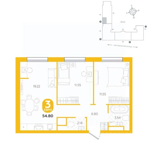 Продаётся квартира площадью 54.80 м2 в жилом комплексе "Айрис". Квартира находится на 3 этаже, жилая площадь квартиры 30.80 м2, площадь просторной кухни — 8.80 м2. Среди особенностей планировки — изолированные комнаты с окнами на одну сторону, 1 совмещённый санузел. Срок сдачи — III кв. 2027 Жилой комплекс "Айрис" — это: - фиджитал-квартал в Тюмени - дома высотой от 7 до 25 этажей - квартиры с системой "Умный дом" - цифровые технологии как элемент благоустройства Окружение В нескольких минутах ходьбы от дома — парк "Комарово" с волейбольной площадкой, открытым кинотеатром, зонами для барбекю и катком. Неподалеку от Airis находится центр иппотерапии, где можно покататься на лошадях и взять уроки верховой езды. На территории Airis появится собственный парк с прогулочными аллеями. Инфраструктура В 5-10 минутах от квартала открыты 2 детских сада и гимназия. На шопинг можно отправиться в торговые комплексы "Колумб" и "Кристалл" — они находятся недалеко от дома. Благоустройство Уютный двор — приватное пространство для жителей. В беседках можно будет почитать книгу в тишине, а в тени деревьев устроиться на пикник. На крыше многоуровневого паркинга будет лаунж-зона с кинотеатром, баскетбольная площадка и воркаут-пространство, где можно позаниматься с виртуальным тренером — достаточно отсканировать код. Лобби Интерьеры лобби выполнены в пастельных тонах с элементами фиджитал-решений. Для отдыха и ожидания гостей создана лаунж-зона. Также есть гостевые санузлы. Колясочные Возвращайтесь налегке после прогулки с малышом — оставить коляску можно в специальном помещении на первом этаже. Кладовые Для сезонных и габаритных вещей предусмотрены отдельные кладовые на цокольном этаже. В каждом помещении уже проведено электричество и выполнена стяжка пола. Паркинг На территории — два многоуровневых наземных паркинга. Один из них примыкает к домам — из него можно напрямую пройти в парадные. Планировки Планировки квартала — от компактной студии до сити-хауса с собственным палисадником — соответствуют любым жизненным сценариям. Можно выбрать квартиры с террасами и готовыми дизайнерскими интерьерами. Продам 3-комнатную квартиру до 7 млн. рублей в Тюменской области.