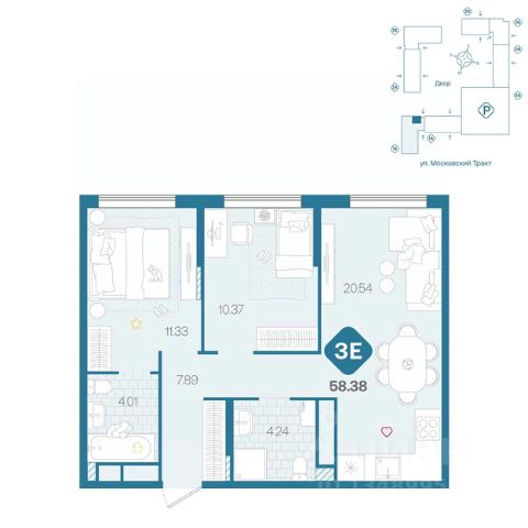 Продаётся квартира площадью 54.80 м2 в жилом комплексе "Айрис". Квартира находится на 3 этаже дома, который будет введен в эксплуатацию в 3 квартале 2027 года. Жилая площадь квартиры 30.80 м2, площадь просторной кухни — 8.80 м2. Среди особенностей планировки — изолированные комнаты с окнами на одну сторону, 1 совмещённый санузел. Жилой комплекс "Айрис" — это: фиджитал-квартал в Тюмени дома высотой от 7 до 25 этажей квартиры с системой "Умный дом" цифровые технологии как элемент благоустройства Срок сдачи — III кв. 2027 Окружение В нескольких минутах ходьбы от дома — парк "Комарово" с волейбольной площадкой, открытым кинотеатром, зонами для барбекю и катком. Неподалеку от Airis находится центр иппотерапии, где можно покататься на лошадях и взять уроки верховой езды. На территории Airis появится собственный парк с прогулочными аллеями. Инфраструктура В 5-10 минутах от квартала открыты 2 детских сада и гимназия. На шопинг можно отправиться в торговые комплексы "Колумб" и "Кристалл" — они находятся недалеко от дома. Благоустройство Уютный двор — приватное пространство для жителей. В беседках можно будет почитать книгу в тишине, а в тени деревьев устроиться на пикник. На крыше многоуровневого паркинга будет лаунж-зона с кинотеатром, баскетбольная площадка и воркаут-пространство, где можно позаниматься с виртуальным тренером — достаточно отсканировать код. Лобби Интерьеры лобби выполнены в пастельных тонах с элементами фиджитал-решений. Для отдыха и ожидания гостей создана лаунж-зона. Также есть гостевые санузлы. Колясочные Возвращайтесь налегке после прогулки с малышом — оставить коляску можно в специальном помещении на первом этаже. Кладовые Для сезонных и габаритных вещей предусмотрены отдельные кладовые на цокольном этаже. В каждом помещении уже проведено электричество и выполнена стяжка пола. Паркинг На территории — два многоуровневых наземных паркинга. Один из них примыкает к домам — из него можно напрямую пройти в парадные. Планировки Планировки квартала — от компактной студии до сити-хауса с собственным палисадником — соответствуют любым жизненным сценариям. Можно выбрать квартиры с террасами и готовыми дизайнерскими интерьерами. 3-комнатная квартира до 7 млн. рублей в Тюмени.