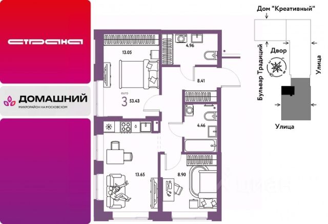 Продаётся квартира площадью 54.80 м2 в жилом комплексе "Айрис". Квартира находится на 3 этаже, жилая площадь квартиры 30.80 м2, площадь просторной кухни — 8.80 м2. Среди особенностей планировки — изолированные комнаты с окнами на одну сторону, 1 совмещённый санузел. Срок сдачи — III кв. 2027 Жилой комплекс "Айрис" — это: - фиджитал-квартал в Тюмени - дома высотой от 7 до 25 этажей - квартиры с системой "Умный дом" - цифровые технологии как элемент благоустройства Окружение В нескольких минутах ходьбы от дома — парк "Комарово" с волейбольной площадкой, открытым кинотеатром, зонами для барбекю и катком. Неподалеку от Airis находится центр иппотерапии, где можно покататься на лошадях и взять уроки верховой езды. На территории Airis появится собственный парк с прогулочными аллеями. Инфраструктура В 5-10 минутах от квартала открыты 2 детских сада и гимназия. На шопинг можно отправиться в торговые комплексы "Колумб" и "Кристалл" — они находятся недалеко от дома. Благоустройство Уютный двор — приватное пространство для жителей. В беседках можно будет почитать книгу в тишине, а в тени деревьев устроиться на пикник. На крыше многоуровневого паркинга будет лаунж-зона с кинотеатром, баскетбольная площадка и воркаут-пространство, где можно позаниматься с виртуальным тренером — достаточно отсканировать код. Лобби Интерьеры лобби выполнены в пастельных тонах с элементами фиджитал-решений. Для отдыха и ожидания гостей создана лаунж-зона. Также есть гостевые санузлы. Колясочные Возвращайтесь налегке после прогулки с малышом — оставить коляску можно в специальном помещении на первом этаже. Кладовые Для сезонных и габаритных вещей предусмотрены отдельные кладовые на цокольном этаже. В каждом помещении уже проведено электричество и выполнена стяжка пола. Паркинг На территории — два многоуровневых наземных паркинга. Один из них примыкает к домам — из него можно напрямую пройти в парадные. Планировки Планировки квартала — от компактной студии до сити-хауса с собственным палисадником — соответствуют любым жизненным сценариям. Можно выбрать квартиры с террасами и готовыми дизайнерскими интерьерами. 3-комнатная квартира до 8 млн. рублей в Тюмени.