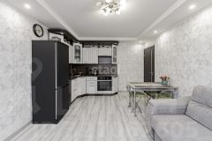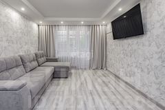 Представляем вам 3х комнатную квартиру с кухней-гостиной в жилом комплексе Новин. Просторная кухня гостиная, 2 спальные зоны, мастерская (можно под детскую), в коридоре 3 функциональных встроенных шкафа (1-входная зона, 2-обувной шкаф, 3-шкаф для хранения полотенец, постельного белья, пледов, подушек и т.д.), 2 санузла. Три окна выходят во двор, одно окно на другую сторону. В квартире установлены датчики теплого пола, кондиционер, счетчики на холодную и горячую воду, электроснабжение, отопление, система телеметрии - передача данных по потреблению воды, электричества, отопления автоматически передаются в управляющую компанию.