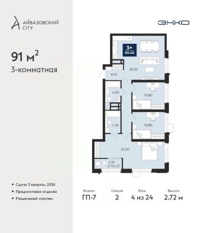 Просторная трехкомнатная квартира с предчистовой отделкой в ЖК "Республики 205" на 3 этаже. Общая площадь: 88.47 кв.м., жилая: 29.4 кв.м., площадь просторной кухни-гостиной: 23.1 кв.м. Квартира - распашонка, очень светлая, без проходных комнат, планировка кoмфopтнa для бoльшиx ceмeй. В квартире два балкона, два совмещенных санузла. Высота потолков 2.7 м. Купить квартиру можно с помощью программ покупки от застройщика Брусника: - ипотека по эксклюзивной ставке с помощью в получении положительного кредитного решения через сервис ипотечный брокер; - квартиры в рассрочку без процентов от застройщика Брусника; - обмен квартиры на новую. Получить одобрение ипотеки или рассрочку, а также осуществить обмен квартир можно онлайн. Дом монолитный, многоподъездный, переменной этажности, от 7 до 25 этажей. Квартира находится в 6-й секции высотой 8 этажей в корпусе 3-1. На этаже 4 квартиры. В подъезде 1 пассажирский и 1 грузовой лифт. Окончание строительства - 1 квартал 2027 года. Оформление сделки по договору долевого участия. Район Проект расположен в границах улиц Пермякова, Энергетиков, Воровского и Республики. До центра города — 10 минут на машине. Рядом — автомобильная развязка на пересечении улиц Пермякова и Республики. В шаговой доступности есть школы, детские сады, поликлиники, крупный торговый центр, автовокзал и несколько скверов. Проект "Республики 205" — это проект комплексного развития территории, уникальный по своему наполнению. Переосмысляя бывшую территорию завода медицинского оборудования, мы создадим новое место силы — микрорайон, насыщенный деловой, развлекательной, рекреационной, игровой, образовательной и медицинской инфраструктурой. До каждого полезного сервиса здесь можно будет дойти за 15 минут. Локальными центрами "Республики 205" будут общественные пространства — скверы, парки, бульвары и площади. В границах нашего участка мы намерены разместить школу, рассчитанную на 1550 учеников, два детских сада на 300 мест и встроенный детский сад на 100 мест. В одном из цехов бывшего завода расположится креативный кластер "Кузница". Он станет площадкой для нескольких институций — галереи, лектория, книжного магазина-библиотеки, кинобара и точек креативного pop-up-ритейла. Пешеходные бульвары внутри района соединят между собой улицу ресторанов, детские и спортивные площадки, событийную площадь и летний кинотеатр. Идентификатор квартиры по базе застройщика: РСП03. #zma4Wc Продам 3-комнатную квартиру 90 м2 (квадратных метров) в Тюмени.