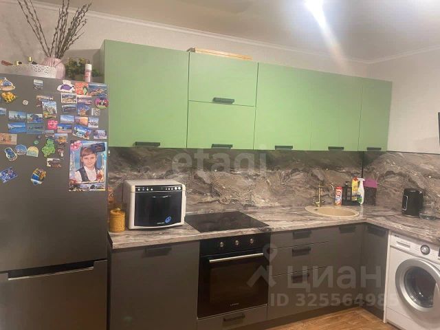 Квартира частично меблирована: остаются два шкафа-купе, кухонный гарнитур, сенсорная электрическая плита и сенсорная мощная вытяжка, стиральная машина, что позволит вам сразу же наслаждаться жизнью в новом доме без лишних затрат на обустройство. В ванной комнате подключен водонагреватель в случае,если будет отключение горячей воды.