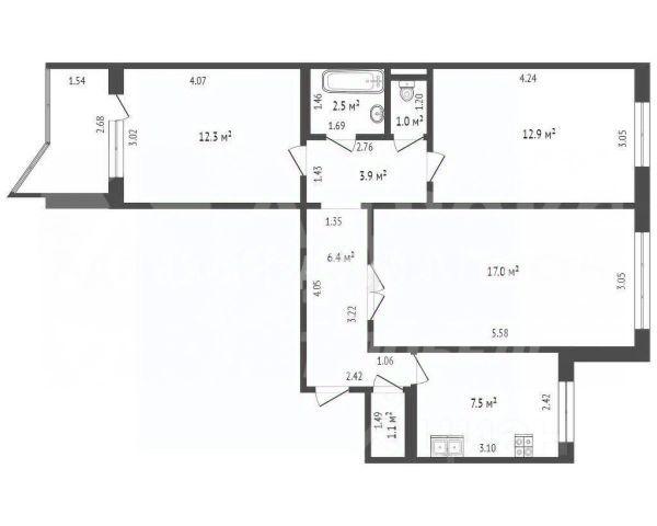 • ✓ В базе Циан 1 3-комнатных квартир без ремонта в микрорайоне 3-й в городе Тюмень
