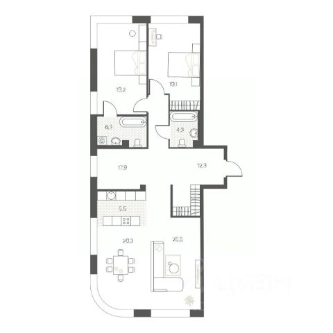 Трехкомнатная квартира в ЖК "Айвазовский City" на 2 этаже. Квартира без отделки, новый владелец может сделать ремонт по своему дизайн-проекту. Общая площадь: 113.11 кв.м., жилая: 50 кв.м., площадь просторной кухни-столовой: 31.74 кв.м. Угловая квартира, идеально подойдет любителям тишины и панорамных видов. В квартире две лоджии, три совмещенных санузла. Высота потолков 2.72 м. Дом монолитный, многоподъездный, переменной этажности, от 9 до 24 этажей. Квартира находится в 5-й секции высотой 9 этажей в корпусе ГП-4. На этаже 4 квартиры. В подъезде 1 пассажирский и 1 грузовой лифт. Строительство завершено, дом сдан в 4 квартале 2023 года. Оформление сделки по договору купли-продажи. Новый жилой район располагается в живописном месте на берегу Туры в центральной части города. Принципиально новое пространство для жизни в центре современного города для тех, чьи мечты сбываются, кто нацелен на постоянный рост, перемены к лучшему для себя и своих близких. Каждая деталь Айвазовский City вдохновляет и заряжает на новые свершения: авторская архитектура, сбалансированная продуманная инфраструктура, дизайнерские дворы со спортивными и детскими площадками, парковые зоны с фонтанами, водный канал, украшающий центральный прогулочный маршрут района и многое другое. В 2019 года проект стал лауреатом престижной премии Urban Awards 2019 в номинации "Лучший строящийся региональный жилой комплекс бизнес-класса". Главная особенность Айвазовский City - соседство разных архитектурных школ в рамках одного дома. Изысканная классика, выразительная эклектика и оригинальный модерн - жить в одном из таких домов настоящий повод для гордости. Айвазовский City это идеальное сочетание комфорта, технологий и развитой инфраструктуры. Вход в подъезд возможен с улицы и со двора. Отправляясь на работу или за покупками, жители могут выйти с внешней стороны дома, а для прогулки с ребенком со стороны двора. Экологически чистые материалы и энергосберегающие технологии, качественное освещение общественных зон, видеонаблюдение по всей территории жилого района (в том числе в подъездах, лифтах и в подземном паркинге), закрытые дворы с доступом только для жителей Айвазовский City. Часть домов в Айвазовский City будут оснащены подземным паркингом. Востребованный в нашем климатическом поясе формат хранения автомобилей защитит собственность владельца в любое время года. Аккредитация в банках: ОАО "Альфа-Банк", ПАО "Газпромбанк", ПАО Банк "ВТБ", "Сбербанк России", ПАО АКБ "Абсолют Банк" и других. #lfTAod