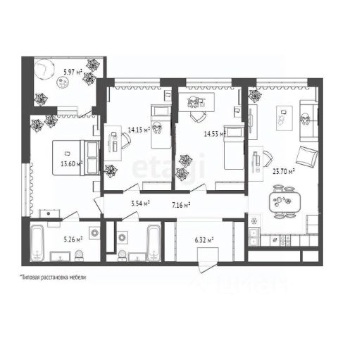 Квартира с террасой в квартале премиум-класса. Среди насыщенной инфраструктуры центра здесь находятся одни из лучших учебных заведений не только по городу, но и во всей области. Планировка предусматривает мастер-спальню со сквозной гардеробной, две детские комнаты, просторную кухню-гостиную, дополнительный санузел и постирочную. Терраса площадью 40,8 м² на уровне второго этажа позволяет пользоваться всеми преимуществами открытого пространства, но без ощущения высоты. Здесь можно организовать летнюю кухню, камерный кинотеатр или фитнес-зону. Выходов на террасу два: из спальни и кухни-гостиной. Высота окон — 2,4 метра, поэтому в комнаты проникает много естественного света. В гостиной спроектировано радиусное окно для бесшовного обзора на две стороны. Профили выполнены из золотистого алюминия. Витражи с тройным остеклением и двухкамерным стеклопакетом. Они не пропускают холод и жар — это сохраняет комфортный микроклимат в квартире. Внутри пола встроены бесшумные конвекторы. Они создают естественную циркуляцию теплого воздуха и не загораживают вид из окна. Узнать детали проекта и договориться о персональной презентации можно по номеру, указанному в объявлении.