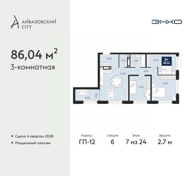 Квартира с приватными спальнями в квартале премиум-класса. В 130 метрах от набережной и в 50 метрах от пешеходного бульвара с гастрономией, торговой галереей и памятниками архитектуры. Экспозиционная планировка строго разделяет личное и общее пространство в квартире. Она предусматривает две спальни, просторную гостиную с кухней-нишей, гардеробную и дополнительный санузел. Высота окон — 2,4 метра, поэтому в комнаты проникает много естественного света. В спальне и гостиной спроектированы радиусные окна для бесшовного обзора на две стороны. Профили выполнены из золотистого алюминия. Витражи с тройным остеклением и двухкамерным стеклопакетом. Они не пропускают холод и жар — это сохраняет комфортный микроклимат в квартире. Внутри пола встроены бесшумные конвекторы. Они создают естественную циркуляцию теплого воздуха и не загораживают вид из окна. Узнать детали проекта и договориться о персональной презентации можно по номеру, указанному в объявлении.