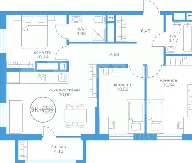 Два санузла, продуманные ниши под шкафы, эргономичные входные группы.
