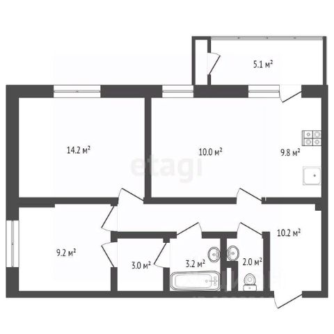 Уникальная особенность квартиры - высота потолка 3м! Стандартная высота в доме 2,7м.