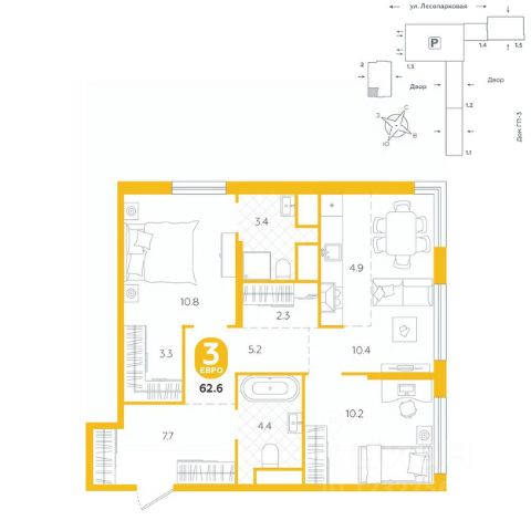 Квартира располагается в ГК "Чистые Пруды" от "Паритет девелопмент". Это флагманский проект компании в Тюмени. Расположение вдали от шумных улиц и оживленного центра создает ощущение жизни на природе и окружает тишиной и спокойствием. Есть вся необходимая социальная и коммерческая инфраструктура: магазины и сфера услуг на первых этажах. Школы, сады, поликлиника, парки в шаговой доступности. Квартал строится в районе Новой Лесобазы. Рядом выезд на объездную, что существенно экономит время. Поездка до центра города на автомобиле занимает 15-20 минут. Городские кварталы "Чистые Пруды" сформирован из домов переменной этажности и многоуровневых паркингов. Ввод 1 очереди строительства запланирован на II кв. 2028 года. Всё благоустройство квартала представлено двумя функциональными зонами: приватная внутри дворовая и общественная. Каждый закрытый двор имеет выход на единую променадную зону - бульвар. Концепция благоустройства основана на принципе модульности, что формирует основную идею приватности. Приватность проекта подчеркивает его особенный климат внутри. Модульное благоустройство позволит максимально эффективно использовать пространство двора и удовлетворить потребности различных категорий жителей. В квартирах базово выполнена улучшенная черновая отделка, которая включает в себя: выровненные стены, стяжка пола с шумоизоляцией, горизонтальная разводка отопления, установлены счетчики с телеметрией, окна с 5-камерным профилем и надежные входные двери. При желании можно добавить ремонт от застройщика и включить его в стоимость ипотеки, что позволит сэкономить на стройматериалах и переехать сразу после получения ключей. Характеристики квартиры: этаж - 6 количество комнат - 3 номер помещения - 56 площадь квартиры - 61,2 кв.мГармоничные пропорции и большие окна наполняют пространство светом, создавая уютную атмосферу. Умное зонирование позволяет удобно организовать как рабочую, так и жилую зоны, что особенно важно для современных жителей. Санузел спроектирован с учетом всех потребностей: здесь есть ванна и место для стиральной машины. Каждый метр квартиры используется с максимальной эффективностью, что делает эту планировку отличным выбором для тех, кто ценит комфорт и удобство.