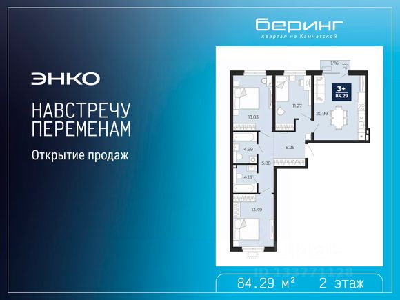 3-комн. квартира в ЖК "Беринг" на 2 этаже. Общая площадь: 84.29 кв.м. Высота потолков 2.72 м. Дом монолитный, черырехподъездный, переменной этажности, от 19 до 24 этажей. Квартира находится в 4-й секции высотой 19 этажей в корпусе ГП-76. На этаже 5 квартир. В подъезде 1 пассажирский и 1 грузовой лифт. Окончание строительства - 4 квартал 2027 года. Оформление сделки по договору долевого участия. Подобно знаменитому исследователю, мы чувствуем себя первооткрывателями этой локации. Хотим показать новую суть места, сформировать для вас жизненный опыт, которого ещё не было. Беринг — район зелёного цвета. Беринг — район, который откроется вам с другой стороны. Впечатлит новым уровнем комфорта и качеством жизни. Беринг — открытие на карте города. Первый квартал расположен в районе Тура, в границах улиц: Камчатская Западносибирская Энтузиастов. Вокруг уже есть всё для того, чтобы ежедневная рутина была лишь частью жизни и не доставляла дискомфорта. Школы и детские сады, магазины и аптеки, поликлиника, места для семейного отдыха, пеших и велопрогулок, и даже рыбалки. Масштабное озеленение дворов — визитная карточка ЭНКО и ваш оазис спокойствия, чтобы отвлечься от повседневности. Раскидистые деревья, кустарники, травы и цветы — осталось остановиться, вдохнуть и расслабиться, глядя на эту природную красоту. Стилистика подъездов продолжает концепцию Беринга, вдохновлённого Камчаткой: сдержанный, но при этом впечатляющий дизайн соседствует с удобством и функциональностью.