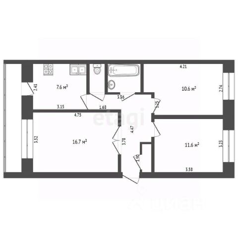• ✓ В базе Циан 1 3-комнатных квартир без ремонта на улице Станционная в городе Тюмень