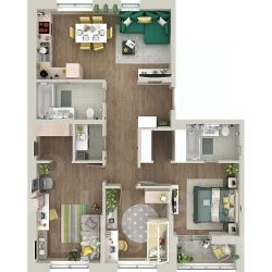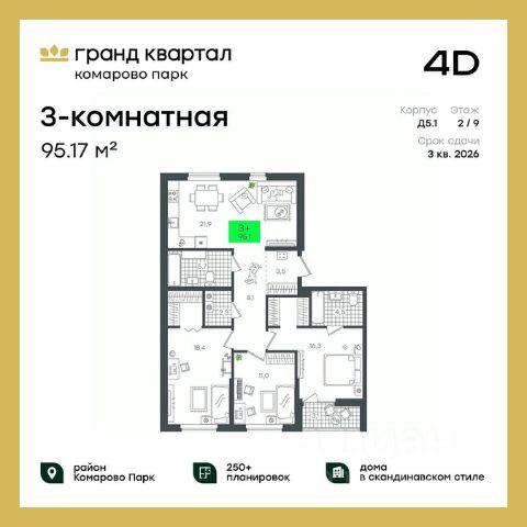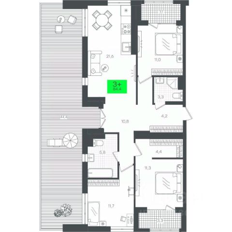 Эту планировку можно приобрести с готовой отделкой в темном или светлом цветовом решении, а также с кухонным гарнитуром, мебелью и декором.