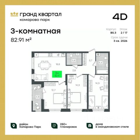 Квартира находится в Квартале мечтателей "Астро". Жилой комплекс от "Паритет Девелопмент" строится в Тюменской слободе на улице Сергея Джанбровского 19 к1.