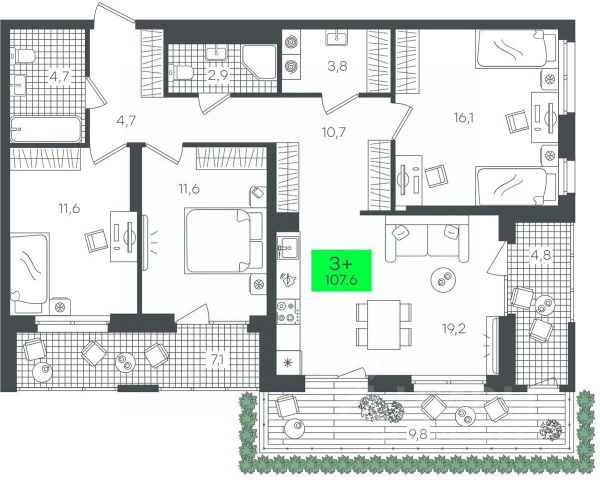 Закрытый двор без машин позволит жителям чувствовать себя в безопасности в кругу своих. В нем предусмотрены детские и спортивные площадки, зоны отдыха.