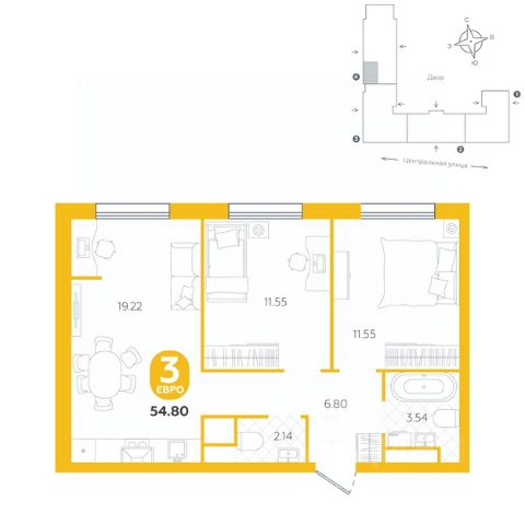 Продаётся квартира площадью 60.60 м2 в жилом комплексе "Айрис". Квартира находится на 2 этаже дома, который будет введен в эксплуатацию в 3 квартале 2027 года. Жилая площадь квартиры 30.80 м2, площадь просторной кухни — 8.80 м2. Среди особенностей планировки — изолированные комнаты с окнами на одну сторону, 1 совмещённый санузел. Жилой комплекс "Айрис" — это: фиджитал-квартал в Тюмени дома высотой от 7 до 25 этажей квартиры с системой "Умный дом" цифровые технологии как элемент благоустройства Срок сдачи — III кв. 2027 Окружение В нескольких минутах ходьбы от дома — парк "Комарово" с волейбольной площадкой, открытым кинотеатром, зонами для барбекю и катком. Неподалеку от Airis находится центр иппотерапии, где можно покататься на лошадях и взять уроки верховой езды. На территории Airis появится собственный парк с прогулочными аллеями. Инфраструктура В 5-10 минутах от квартала открыты 2 детских сада и гимназия. На шопинг можно отправиться в торговые комплексы "Колумб" и "Кристалл" — они находятся недалеко от дома. Благоустройство Уютный двор — приватное пространство для жителей. В беседках можно будет почитать книгу в тишине, а в тени деревьев устроиться на пикник. На крыше многоуровневого паркинга будет лаунж-зона с кинотеатром, баскетбольная площадка и воркаут-пространство, где можно позаниматься с виртуальным тренером — достаточно отсканировать код. Лобби Интерьеры лобби выполнены в пастельных тонах с элементами фиджитал-решений. Для отдыха и ожидания гостей создана лаунж-зона. Также есть гостевые санузлы. Колясочные Возвращайтесь налегке после прогулки с малышом — оставить коляску можно в специальном помещении на первом этаже. Кладовые Для сезонных и габаритных вещей предусмотрены отдельные кладовые на цокольном этаже. В каждом помещении уже проведено электричество и выполнена стяжка пола. Паркинг На территории — два многоуровневых наземных паркинга. Один из них примыкает к домам — из него можно напрямую пройти в парадные. Планировки Планировки квартала — от компактной студии до сити-хауса с собственным палисадником — соответствуют любым жизненным сценариям. Можно выбрать квартиры с террасами и готовыми дизайнерскими интерьерами. Купить 3-комнатную квартиру в дешевой новостройке в Тюменской области.