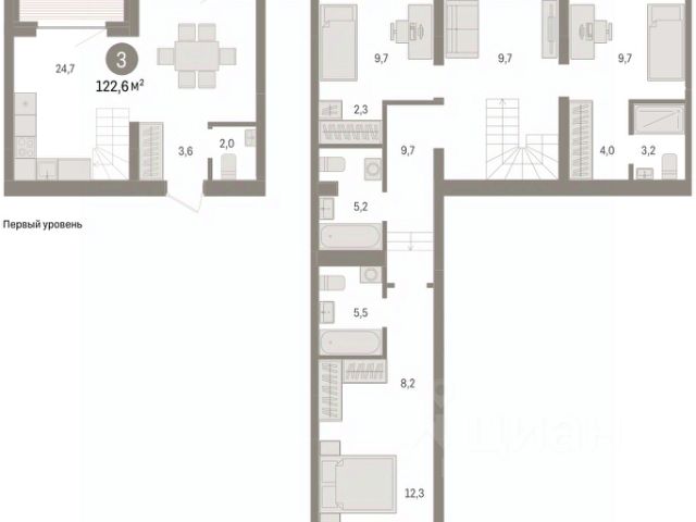 Квартира включает три полноценные спальни, одна из которых оснащена собственной ванной комнатой, кухню-гостиную и гостевой санузел. Панорамные окна, выходящие на солнечную сторону, наполняют квартиры светом. Ремонт выполнен согласно дизайнерскому проекту в светлых тонах, создающих ощущение простора. В квартире предусмотрены комфортные условия: подогрев полов в обоих санузлах, бойлер для горячей воды, фильтры на воду, два кондиционера, многоуровневое освещение и зенитное окно в коридоре.