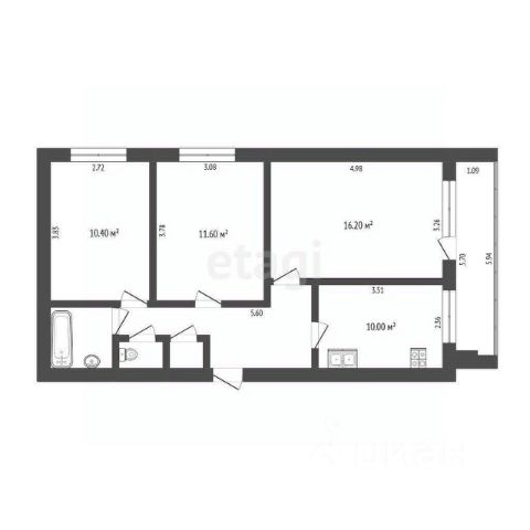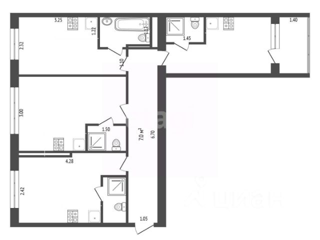 Просторная квартира с отличной планировкой. В ней три большие комнаты: 24м², 17м², 10м², кухня 13м², раздельный санузел, широкий коридор.