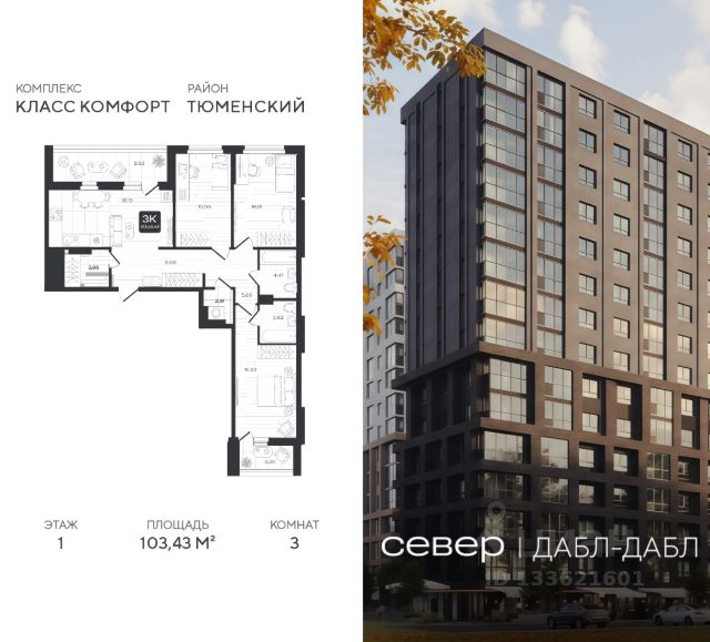 Продаётся квартира площадью 103.43 м2 в жилом комплексе "Дабл-Дабл". Квартира находится на 1 этаже дома, который будет введен в эксплуатацию во 2 квартале 2028 года. Жилая площадь квартиры 44.43 м2, площадь просторной кухни — 18.10 м2. Среди особенностей планировки — изолированные комнаты с окнами на одну сторону, 1 совмещённый санузел. Жилой комплекс "Дабл-Дабл" — это: проект комфорт-класса на Московском тракте дома высотой 15 этажей квартиры от 1-комнатных до 2-уровневых 1 очередь — срок сдачи IV кв. 2025 2 очередь — срок сдачи III кв. 2028 Окружение На границе жилого комплекса — живописный лес. Достаточно открыть окна, чтобы впустить в комнаты ароматы зелени, прохладу и чистый воздух. Благоустройство Юные жители оценят игровые площадки и воркаут-зоны. Любителям неспешных прогулок понравится 2-уровневый променад с панорамным видом и навесами. Лобби Помещения встречают дизайнерскими интерьерами с уютными лаунж-зонами, где удобно подождать курьера или просто сделать паузу перед возвращением домой. Колясочные Возвращайтесь налегке после прогулки с малышом — оставить коляску можно в специальном помещении на первом этаже. Кладовые Благодаря индивидуальным помещениям на техническом этаже сезонные и габаритные вещи будут на своём месте. 2-уровневые квартиры Просторная гостиная и кухня располагаются на первом этаже, спальня и кабинет — на втором. Почувствуйте, как жизнь выходит на новый уровень комфорта и приватности. Панорамное остекление Окна в пол наполняют комнаты светом и стирают границы между домом и природой. Встречайте рассветы или наслаждайтесь огнями вечернего города. Отделка Ровные стены, подготовленные полы и проведённые коммуникации — мы взяли на себя самые грязные и трудоёмкие этапы ремонта. Квартира станет чистым холстом, где легко создать интерьер в любом стиле.