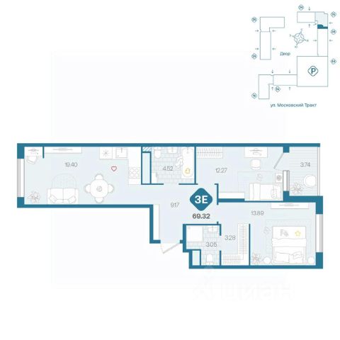 Продаётся квартира площадью 69.8 м2 в жилом комплексе "Айрис". Квартира находится на 10 этаже, жилая площадь квартиры 29.9 м2, площадь просторной кухни — 19.1 м2. Среди особенностей планировки — изолированные комнаты с окнами на одну сторону, 1 совмещённый санузел. Срок сдачи — III кв. 2027 Жилой комплекс "Айрис" — это: - фиджитал-квартал в Тюмени - дома высотой от 7 до 25 этажей - квартиры с системой "Умный дом" - цифровые технологии как элемент благоустройства Окружение В нескольких минутах ходьбы от дома — парк "Комарово" с волейбольной площадкой, открытым кинотеатром, зонами для барбекю и катком. Неподалеку от Airis находится центр иппотерапии, где можно покататься на лошадях и взять уроки верховой езды. На территории Airis появится собственный парк с прогулочными аллеями. Инфраструктура В 5-10 минутах от квартала открыты 2 детских сада и гимназия. На шопинг можно отправиться в торговые комплексы "Колумб" и "Кристалл" — они находятся недалеко от дома. Благоустройство Уютный двор — приватное пространство для жителей. В беседках можно будет почитать книгу в тишине, а в тени деревьев устроиться на пикник. На крыше многоуровневого паркинга будет лаунж-зона с кинотеатром, баскетбольная площадка и воркаут-пространство, где можно позаниматься с виртуальным тренером — достаточно отсканировать код. Лобби Интерьеры лобби выполнены в пастельных тонах с элементами фиджитал-решений. Для отдыха и ожидания гостей создана лаунж-зона. Также есть гостевые санузлы. Колясочные Возвращайтесь налегке после прогулки с малышом — оставить коляску можно в специальном помещении на первом этаже. Кладовые Для сезонных и габаритных вещей предусмотрены отдельные кладовые на цокольном этаже. В каждом помещении уже проведено электричество и выполнена стяжка пола. Паркинг На территории — два многоуровневых наземных паркинга. Один из них примыкает к домам — из него можно напрямую пройти в парадные. Планировки Планировки квартала — от компактной студии до сити-хауса с собственным палисадником — соответствуют любым жизненным сценариям. Можно выбрать квартиры с террасами и готовыми дизайнерскими интерьерами.