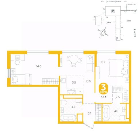 Квартира располагается в ГК "Чистые Пруды" от "Паритет девелопмент". Это флагманский проект компании в Тюмени. Расположение вдали от шумных улиц и оживленного центра создает ощущение жизни на природе и окружает тишиной и спокойствием. Есть вся необходимая социальная и коммерческая инфраструктура: магазины и сфера услуг на первых этажах. Школы, сады, поликлиника, парки в шаговой доступности. Квартал строится в районе Новой Лесобазы. Рядом выезд на объездную, что существенно экономит время. Поездка до центра города на автомобиле занимает 15-20 минут. Городские кварталы "Чистые Пруды" сформирован из домов переменной этажности и многоуровневых паркингов. Ввод 1 очереди строительства запланирован на II кв. 2028 года. Всё благоустройство квартала представлено двумя функциональными зонами: приватная внутри дворовая и общественная. Каждый закрытый двор имеет выход на единую променадную зону - бульвар. Концепция благоустройства основана на принципе модульности, что формирует основную идею приватности. Приватность проекта подчеркивает его особенный климат внутри. Модульное благоустройство позволит максимально эффективно использовать пространство двора и удовлетворить потребности различных категорий жителей. В квартирах базово выполнена улучшенная черновая отделка, которая включает в себя: выровненные стены, стяжка пола с шумоизоляцией, горизонтальная разводка отопления, установлены счетчики с телеметрией, окна с 5-камерным профилем и надежные входные двери. При желании можно добавить ремонт от застройщика и включить его в стоимость ипотеки, что позволит сэкономить на стройматериалах и переехать сразу после получения ключей. Характеристики квартиры: этаж - 10 количество комнат - 3 номер помещения - 101 площадь квартиры - 57,6 кв.мГармоничные пропорции и большие окна наполняют пространство светом, создавая уютную атмосферу. Умное зонирование позволяет удобно организовать как рабочую, так и жилую зоны, что особенно важно для современных жителей. Санузел спроектирован с учетом всех потребностей: здесь есть ванна и место для стиральной машины. Каждый метр квартиры используется с максимальной эффективностью, что делает эту планировку отличным выбором для тех, кто ценит комфорт и удобство.