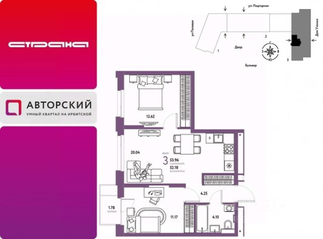 Новая квартира в ЖК "Авторский" напрямую от федерального застройщика "Страна Девелопмент". Продается 3комнатная квартира на 10 этаже от застройщика Страна Девелопмент. Площадь квартиры 53,48 кв. м. Жилой комплекс "Авторский" — квартал для авторов своей жизни от федерального застройщика "Страна Девелопмент" вблизи исторического центра — до Моста Влюблённых 4 минуты на авто, а ещё рядом ведущие вузы Тюмени. ПРЕИМУЩЕСТВА - Тематический бульвар объединяет дома и закрытые дворы квартала в единую экосистему: зелень, перголы для отдыха, детские и спортивные площадки. По вечерам бульвар преображается: освещение создаёт уютную атмосферу. - Новый детский сад рядом, который появится в 2026 году прямо в одном из корпусов комплекса. В нём выделено 150 мест для малышей. - Во дворах нет машин, шума, выхлопных газов и посторонних людей. Всё пространство разделено на зоны по интересам и возрастам. Для детей — игровые площадки из эко-материалов и мягкая защита от падений. Для взрослых — зоны отдыха, воркаут-площадки и тропинки для неспешных прогулок. ОТДЕЛКА Квартиры сдаются с предчистовой отделкой: произведена разводка электричества и отопления, выполнена стяжка пола, стены выровнены "под маяк", установлены розетки, выключатели и радиаторы. ДИЗАЙНЕРСКАЯ ОТДЕЛКА При покупке квартиры в ЖК "Авторский" можно включить стоимость ремонта в ипотеку. Пять вариантов на выбор: хлопковая нить, серый шторм, белый камень, шалфей, голубой вереск. СПОСОБЫ ПОКУПКИ Сотрудники "Страна Девелопмент" будут сопровождать вас на каждом этапе сделки, помогут получить одобрение по ипотеке или снизить ежемесячный платеж. - ипотека - рассрочка - с использованием материнского капитала -100% оплата наличными Цены на квартиры указаны без учета скидок. На консультации менеджер подскажет, какие акции действуют, и как получить одобрение по ипотеке с низкой ставкой.
