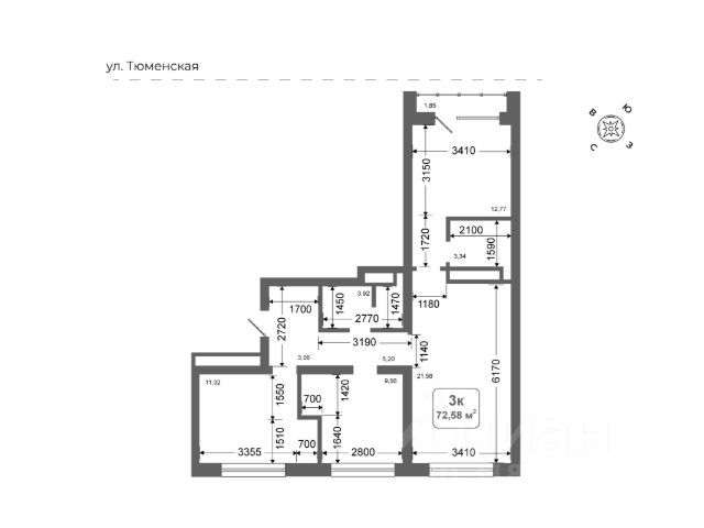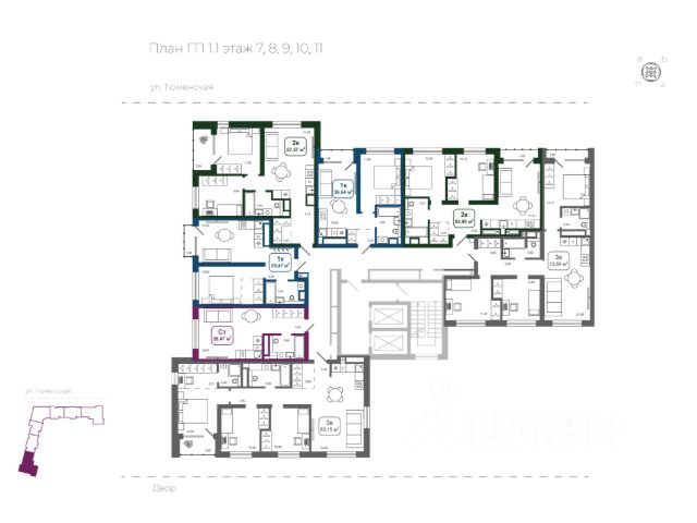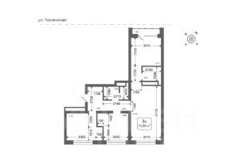 Квартира в ЖК Клевер Парк; 60,3 м²; 16/18 этаж, Тюмень, ул. Обдорская, 1.