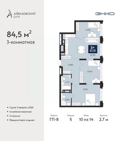 Продается 3-комн. квартира от застройщика с предчистовой отделкой в ЖК "Республики 205" на 10 этаже. Общая площадь: 125.11 кв.м., жилая: 47.3 кв.м., площадь просторной кухни-гостиной: 28.2 кв.м. Угловая квартира, идеально подойдет любителям тишины и панорамных видов. В квартире два балкона, два совмещенных и один раздельный санузел. Высота потолков 2.7 м.