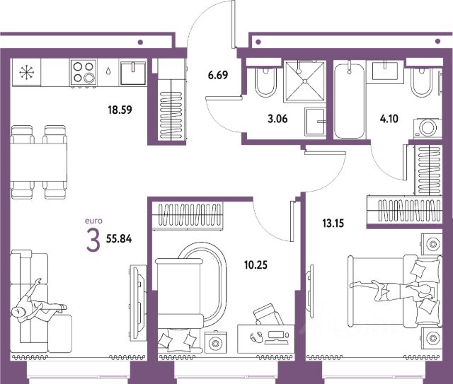 Квартира с кухней-гостиной и тремя спальнями в Октябрьском на Туре. Особенности планировки: вид на реку, лоджия, мастер-спальня, постирочная, свободная планировка. квартиры в нашей базе: ОКТ-08-6-6.11.8. Район Проект расположен на берегу реки, в одном из самых живописных и экологичных районов Тюмени. За последние годы облик района изменился. По соседству с индивидуальной застройкой выросли многоквартирные дома. При проектировании "Октябрьского на Туре" нашей приоритетной задачей стало сохранение природного ландшафта: мы постарались деликатно вписать в него современную архитектуру. Квартал удачно расположен с точки зрения дорожной инфраструктуры. На автомобиле путь до центра города составит 15 минут. Добраться до набережной и главных тюменских достопримечательностей можно и на общественном транспорте. В пешей доступности находится автобусная остановка. Проект По мастер-плану здесь будет восемь домов. Ядро застройки составляют замкнутые кварталы переменной этажности. Их высотность понижается по мере приближения к реке. На углах участка мы разместили башни-доминанты. Одной из достопримечательностей квартала станет парк на Туре — здесь появится зеленая зона протяженностью около 6 километров для пеших и велопрогулок. Смысловая ось квартала — широкая главная улица с высаженными вдоль неё высокими деревьями. Они создают тень и работают как шумо- и пылезащитные экраны. Это место сосредоточения основных пешеходных и транспортных потоков, на сторону которых мы ориентировали большинство коммерческих помещений. Отсюда жители могут свернуть на тихие соседские улицы и попасть на внутриквартальную площадь — ещё одну точку притяжения. #Z2D3M7