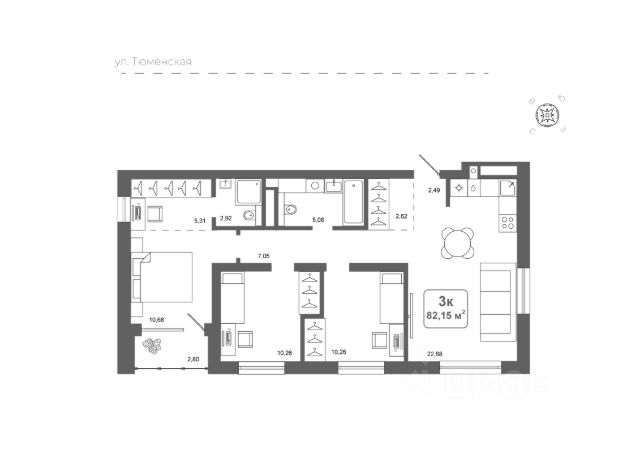 Квартира находится в Квартале мечтателей "Астро". Жилой комплекс от "Паритет Девелопмент" строится в Тюменской слободе на улице Сергея Джанбровского 19 к1. Характеристики квартиры: этаж - 11 количество комнат - 3 номер помещения - 77 площадь квартиры - 60,8 кв.м высота потолка - 2,72 м Это экологически чистая зона с видом на лес с разнообразием хвойных и лиственных деревьев. Вся инфраструктура в шаговой доступности - магазины, кафе, пункты выдачи. В планах - школа и детский сад. Закрытый двор без машин позволит жителям чувствовать себя в безопасности в кругу своих. В нем предусмотрены детские и спортивные площадки, зоны отдыха. Жилой комплекс "Астро" включает 6 секций высотой 9-15 этажей с подземным паркингом. В общей сложности в нем всего 384 квартиры. На 1 этажах появится коммерческая инфраструктура. Срок сдачи 1 кв. 2026 года. Планировки учитывают различные сценарии жизни, продуманы и функциональны. В квартирах выполнена стяжка пола с шумоизоляцией, выровнены стены, разводка отопления - горизонтальная - в полу, установлены счетчики с телеметрией. Эту планировку можно приобрести с готовой отделкой в темном или светлом цветовом решении, а также с кухонным гарнитуром, мебелью и декором. Большие окна наполняют квартиру естественным светом. Выделены зоны для работы и отдыха. Просторный санузел позволяет свободно разместить и ванну, и стиральную машину. Большая кухня имеет функциональную планировку, где комфортно собираться всей семьей или с друзьями. Здесь легко расположится кухонный гарнитур, стол со стульями и место для отдыха.