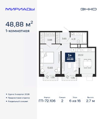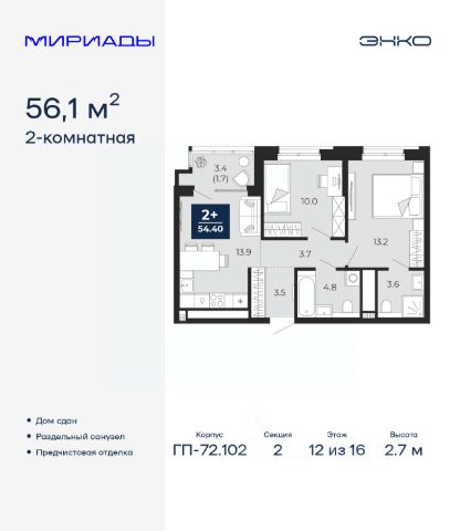 Квартира — с готовой отделкой. Установлена сантехника, проведены все коммуникации. Ламинат оттенков натурального дерева, светлые обои и белоснежные натяжные потолки визуально увеличивают пространство и станут идеальной базой для любого интерьера.