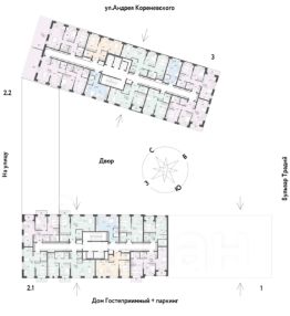 Дом монолитный, черырехподъездный, переменной этажности, от 14 до 21 этажей. Квартира находится в 3-й секции высотой 14 этажей в корпусе 211. На этаже 6 квартир. В подъезде 1 пассажирский и 1 грузовой лифт. Окончание строительства - 4 квартал 2026 года. Оформление сделки по договору долевого участия.