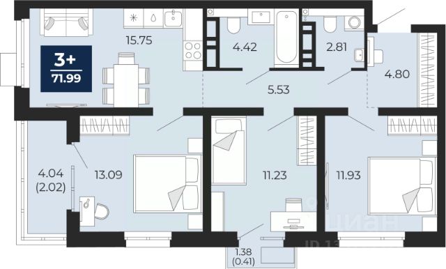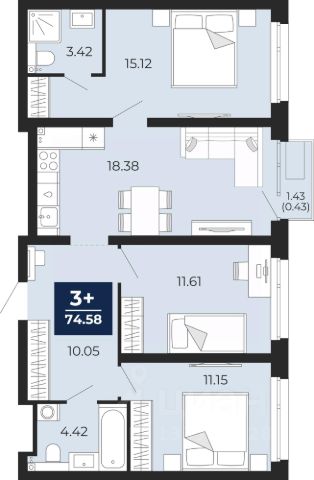 Продаётся квартира площадью 69.9 м2 в жилом комплексе "Айрис". Квартира находится на 12 этаже, жилая площадь квартиры 29.5 м2, площадь просторной кухни — 21.2 м2. Среди особенностей планировки — изолированные комнаты с окнами на одну сторону, 1 совмещённый санузел. Срок сдачи — III кв. 2027 Жилой комплекс "Айрис" — это: - фиджитал-квартал в Тюмени - дома высотой от 7 до 25 этажей - квартиры с системой "Умный дом" - цифровые технологии как элемент благоустройства Окружение В нескольких минутах ходьбы от дома — парк "Комарово" с волейбольной площадкой, открытым кинотеатром, зонами для барбекю и катком. Неподалеку от Airis находится центр иппотерапии, где можно покататься на лошадях и взять уроки верховой езды. На территории Airis появится собственный парк с прогулочными аллеями. Инфраструктура В 5-10 минутах от квартала открыты 2 детских сада и гимназия. На шопинг можно отправиться в торговые комплексы "Колумб" и "Кристалл" — они находятся недалеко от дома. Благоустройство Уютный двор — приватное пространство для жителей. В беседках можно будет почитать книгу в тишине, а в тени деревьев устроиться на пикник. На крыше многоуровневого паркинга будет лаунж-зона с кинотеатром, баскетбольная площадка и воркаут-пространство, где можно позаниматься с виртуальным тренером — достаточно отсканировать код. Лобби Интерьеры лобби выполнены в пастельных тонах с элементами фиджитал-решений. Для отдыха и ожидания гостей создана лаунж-зона. Также есть гостевые санузлы. Колясочные Возвращайтесь налегке после прогулки с малышом — оставить коляску можно в специальном помещении на первом этаже. Кладовые Для сезонных и габаритных вещей предусмотрены отдельные кладовые на цокольном этаже. В каждом помещении уже проведено электричество и выполнена стяжка пола. Паркинг На территории — два многоуровневых наземных паркинга. Один из них примыкает к домам — из него можно напрямую пройти в парадные. Планировки Планировки квартала — от компактной студии до сити-хауса с собственным палисадником — соответствуют любым жизненным сценариям. Можно выбрать квартиры с террасами и готовыми дизайнерскими интерьерами.