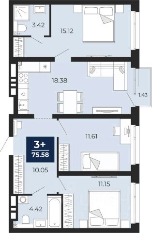 Трехкомнатная квартира с предчистовой отделкой в ЖК "Прео" на 12 этаже. Общая площадь: 71.99 кв.м., жилая: 36.25 кв.м., площадь просторной кухни-столовой: 15.75 кв.м. Квартира угловая, идеально подойдет любителям тишины и панорамных видов. В квартире одна лоджия, один совмещенный и один раздельный санузел. Высота потолков 2.7 м.
