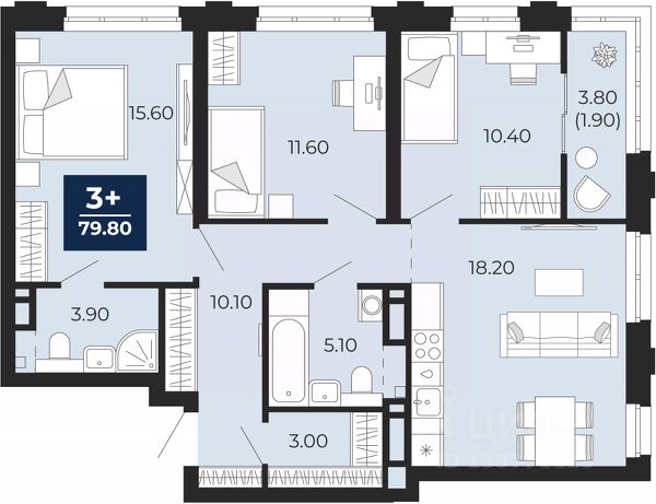 3-комн. квартира с предчистовой отделкой в ЖК "Прео" на 12 этаже. Общая площадь: 82.38 кв.м., жилая: 40.64 кв.м., площадь просторной кухни-столовой: 19.88 кв.м. Квартира - распашонка, без проходных комнат, окна выходят на paзные стороны дома. В квартире одна лоджия, один совмещенный и один раздельный санузел. Высота потолков 2.7 м.