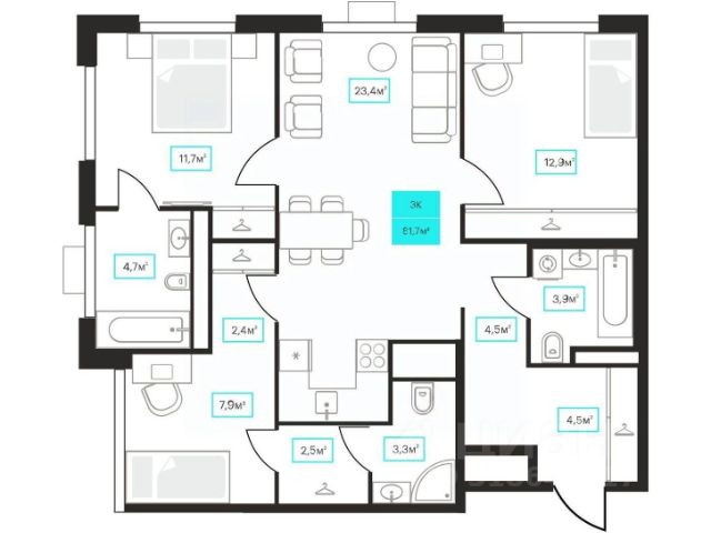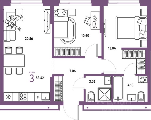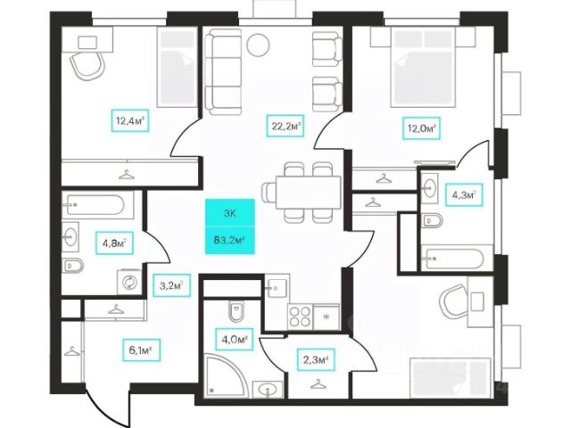 Квартира с кухней-гостиной и тремя спальнями в Октябрьском на Туре. Особенности планировки: вид на реку, лоджия, мастер-спальня, постирочная, предчистовая отделка. квартиры в нашей базе: ОКТ-08-6-6.13.8. Район Проект расположен на берегу реки, в одном из самых живописных и экологичных районов Тюмени. За последние годы облик района изменился. По соседству с индивидуальной застройкой выросли многоквартирные дома. При проектировании "Октябрьского на Туре" нашей приоритетной задачей стало сохранение природного ландшафта: мы постарались деликатно вписать в него современную архитектуру. Квартал удачно расположен с точки зрения дорожной инфраструктуры. На автомобиле путь до центра города составит 15 минут. Добраться до набережной и главных тюменских достопримечательностей можно и на общественном транспорте. В пешей доступности находится автобусная остановка. Проект По мастер-плану здесь будет восемь домов. Ядро застройки составляют замкнутые кварталы переменной этажности. Их высотность понижается по мере приближения к реке. На углах участка мы разместили башни-доминанты. Одной из достопримечательностей квартала станет парк на Туре — здесь появится зеленая зона протяженностью около 6 километров для пеших и велопрогулок. Смысловая ось квартала — широкая главная улица с высаженными вдоль неё высокими деревьями. Они создают тень и работают как шумо- и пылезащитные экраны. Это место сосредоточения основных пешеходных и транспортных потоков, на сторону которых мы ориентировали большинство коммерческих помещений. Отсюда жители могут свернуть на тихие соседские улицы и попасть на внутриквартальную площадь — ещё одну точку притяжения. #22DUvB