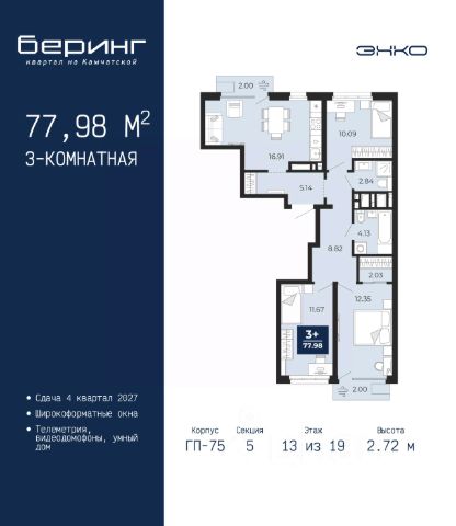 Успейте забронировать по акционной цене, период предложения ограничен! Стоимость квартиры указана со скидкой, ваша экономия составит 500,000 руб. По всем вопросам обращайтесь в офис продаж, мы вам все подробно расскажем. Просторная 3-комн. квартира с предчистовой отделкой в ЖК "Мириады" на 13 этаже. Общая площадь: 105.5 кв.м. Высота потолков 2.7 м. Дом монолитный, трехподъездный, переменной этажности, от 14 до 16 этажей. Квартира находится в 1-й секции высотой 16 этажей в корпусе ГП-72.103. На этаже 8 квартир. В подъезде 1 пассажирский и 1 грузовой лифт. На сегодняшний день строительство окончено, дом сдан в 4 квартале 2025 года. Оформление сделки по договору купли-продажи. Вселенная бесконечных историй. Ранее невиданный Тюмени масштаб: территория 240 гектаров и 1 650 000 м² застройки. Мириады это город масштабных перемен и больших возможностей. Город зеленых рощ и зеркальных озер. Город для работы, учебы и развлечений. Город для детей и их родителей. Город для всех и каждого. Проект расположен в районе Мыс рядом с ТРЦ "Тюмень Сити Молл" в границах улицы Тимофея Чаркова, Тобольского тракта и объездной дороги. Срок полного освоения территории - до 2034 года. #Z6Eie6