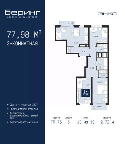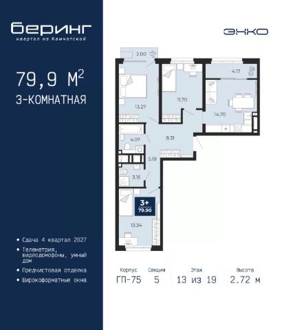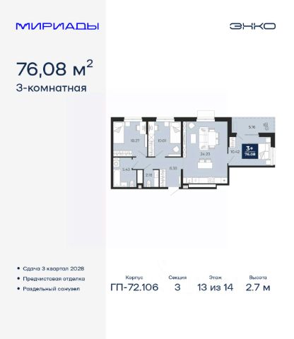 Просторная 3-комн. квартира с предчистовой отделкой в Кварталы "На Минской" на 13 этаже. Общая площадь: 116 кв.м., жилая: 39.7 кв.м., площадь просторной кухни-гостиной: 22.9 кв.м. Квартира угловая, очень светлая, естественная вентиляция при открытии окон. В квартире один балкон и одна лоджия, два совмещенных санузла. Терраса представляет собой роскошную зону отдыха, где вы на свой вкус можете создать атмосферу комфорта и уюта. Высота потолков 2.7 м. Дом монолитный, многоподъездный, переменной этажности, от 7 до 16 этажей. Квартира находится в 1-й секции высотой 16 этажей в корпусе 1. На этаже 8 квартир. В подъезде 2 пассажирских лифта. Окончание строительства - 4 квартал 2026 года. Оформление сделки по договору долевого участия. Квартира с кухней-гостиной и тремя спальнями в кварталах "На Минской". Особенности планировки: гардеробная, лоджия, мастер-спальня, панорамное остекление, постирочная, предчистовая отделка. квартиры в нашей базе: МНС01-Ж1.13.1. В сердце города Кварталы "На Минской" находятся в самом центре. За десять минут можно дойти до площади 400-летия Тюмени и Большого Драматического театра, Тюменского индустриального и медицинского университетов, спортивного комплекса "Строймаш", ТРЦ "Гудвин" и "Премьер", Тюменского технопарка. Поблизости много детских садов, школ и поликлиник. Пространство разного опыта Создавая кварталы "На Минской" мы вдохновлялись Хакскими дворами в Берлине и улицей Давида Агмашенебели в Тбилиси. И первые и вторая — яркие разнообразные пространства, сформированные прогрессивными архитекторами и притягивающие городских интеллектуалов. Престижная недвижимость здесь соседствует с барами, ресторанами, креативными кластерами и бюро, дизайнерскими лавками. Полезные улицы Кварталы "На Минской" свяжет сеть променадов, автомобильных проездов и велодорожек. Уличный фронт проекта мы сформируем с помощью аллейной посадки деревьев. Они создадут тень для ресторанов и кафе на первых этажах, визуально отделят проезжую и пешеходную части, снизят объём пыли и уровень шума. Мы реализуем проект в районе с развитой базовой инфраструктурой. И поэтому тщательно подошли к программированию коммерции, посчитав, что её основная задача — "закрывать" более высокие потребности жителей. Здесь может появиться пекарня с вкусными круассанами, турагентство на случай, если захочется перезимовать в Сочи, массажный кабинет, ресторан, когда надоело есть дома и многое другое. #z47eM8