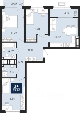 Просторная 3-комн. квартира с предчистовой отделкой в Кварталы "На Минской" на 13 этаже. Общая площадь: 116 кв.м., жилая: 39.7 кв.м., площадь просторной кухни-гостиной: 22.9 кв.м. Угловая квартира, очень светлая, естественная вентиляция при открытии окон. В квартире один балкон и одна лоджия, два совмещенных санузла. Терраса представляет собой роскошную зону отдыха для проведение вечеров в кругу семьи и друзей или организация вечеринок. Высота потолков 2.7 м. Дом монолитный, многоподъездный, переменной этажности, от 7 до 16 этажей. Квартира находится в 1-й секции высотой 16 этажей в корпусе 1. На этаже 8 квартир. В подъезде 2 пассажирских лифта. Окончание строительства - 4 квартал 2026 года. Оформление сделки по договору долевого участия. Квартира с кухней-гостиной и тремя спальнями в кварталах "На Минской". Особенности планировки: гардеробная, лоджия, мастер-спальня, панорамное остекление, постирочная, предчистовая отделка. квартиры в нашей базе: МНС01-Ж1.13.1. В сердце города Кварталы "На Минской" находятся в самом центре. За десять минут можно дойти до площади 400-летия Тюмени и Большого Драматического театра, Тюменского индустриального и медицинского университетов, спортивного комплекса "Строймаш", ТРЦ "Гудвин" и "Премьер", Тюменского технопарка. Поблизости много детских садов, школ и поликлиник. Пространство разного опыта Создавая кварталы "На Минской" мы вдохновлялись Хакскими дворами в Берлине и улицей Давида Агмашенебели в Тбилиси. И первые и вторая — яркие разнообразные пространства, сформированные прогрессивными архитекторами и притягивающие городских интеллектуалов. Престижная недвижимость здесь соседствует с барами, ресторанами, креативными кластерами и бюро, дизайнерскими лавками. Полезные улицы Кварталы "На Минской" свяжет сеть променадов, автомобильных проездов и велодорожек. Уличный фронт проекта мы сформируем с помощью аллейной посадки деревьев. Они создадут тень для ресторанов и кафе на первых этажах, визуально отделят проезжую и пешеходную части, снизят объём пыли и уровень шума. Мы реализуем проект в районе с развитой базовой инфраструктурой. И поэтому тщательно подошли к программированию коммерции, посчитав, что её основная задача — "закрывать" более высокие потребности жителей. Здесь может появиться пекарня с вкусными круассанами, турагентство на случай, если захочется перезимовать в Сочи, массажный кабинет, ресторан, когда надоело есть дома и многое другое. #z4tE6V