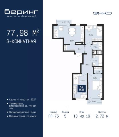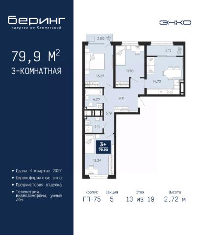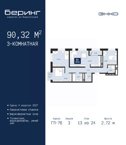 Продается 3-комн. квартира от застройщика с предчистовой отделкой в ЖК "Мириады" на 13 этаже. Общая площадь: 85.55 кв.м., жилая: 37.7 кв.м., площадь просторной кухни-столовой: 21 кв.м. Угловая квартира, идеально подойдет любителям тишины и панорамных видов. В квартире одна лоджия, два совмещенных санузла. Высота потолков 2.7 м. Квартира находится в корпусе ГП-72.105. Дом монолитный, одноподъездный, высотой 23 этажа. На этаже 8 квартир. В подъезде 2 пассажирских и 1 грузовой лифт. Начало строительства - 1 квартал 2026 года. Окончание строительства - 3 квартал 2028 года. Оформление сделки по договору долевого участия. Вселенная бесконечных историй. Ранее невиданный Тюмени масштаб: территория 240 гектаров и 1 650 000 м² застройки. Мириады это город масштабных перемен и больших возможностей. Город зеленых рощ и зеркальных озер. Город для работы, учебы и развлечений. Город для детей и их родителей. Город для всех и каждого. Проект расположен в районе Мыс рядом с ТРЦ "Тюмень Сити Молл" в границах улицы Тимофея Чаркова, Тобольского тракта и объездной дороги. Срок полного освоения территории - до 2034 года. #zmE1m8