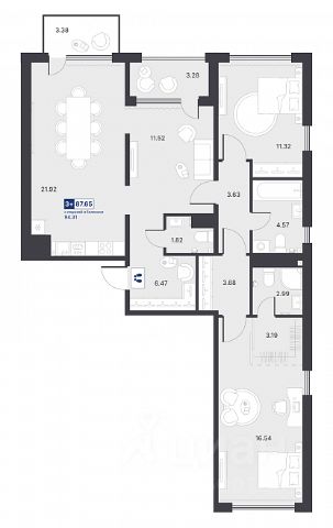 Продается трехкомнатная квартира от застройщика с предчистовой отделкой в ЖК "Дивный квартал у озера" на 15 этаже. Общая площадь: 87.12 кв.м., жилая: 47.33 кв.м., площадь просторной кухни-столовой: 16.02 кв.м. Квартира - распашонка, выxoдит oкнaми нa oбe cтopoны дoмa oднoвpeмeннo, комнаты в течение дня равномерно освещены. В квартире одна лоджия, один совмещенный и один раздельный санузел. Высота потолков 2.7 м.