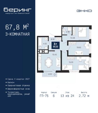 Квартира с кухней-гостиной и тремя спальнями в Октябрьском на Туре. Особенности планировки: вид на реку, лоджия, мастер-спальня, постирочная, свободная планировка. квартиры в нашей базе: ОКТ-08-6-6.13.8. Район Проект расположен на берегу реки, в одном из самых живописных и экологичных районов Тюмени. За последние годы облик района изменился. По соседству с индивидуальной застройкой выросли многоквартирные дома. При проектировании "Октябрьского на Туре" нашей приоритетной задачей стало сохранение природного ландшафта: мы постарались деликатно вписать в него современную архитектуру. Квартал удачно расположен с точки зрения дорожной инфраструктуры. На автомобиле путь до центра города составит 15 минут. Добраться до набережной и главных тюменских достопримечательностей можно и на общественном транспорте. В пешей доступности находится автобусная остановка. Проект По мастер-плану здесь будет восемь домов. Ядро застройки составляют замкнутые кварталы переменной этажности. Их высотность понижается по мере приближения к реке. На углах участка мы разместили башни-доминанты. Одной из достопримечательностей квартала станет парк на Туре — здесь появится зеленая зона протяженностью около 6 километров для пеших и велопрогулок. Смысловая ось квартала — широкая главная улица с высаженными вдоль неё высокими деревьями. Они создают тень и работают как шумо- и пылезащитные экраны. Это место сосредоточения основных пешеходных и транспортных потоков, на сторону которых мы ориентировали большинство коммерческих помещений. Отсюда жители могут свернуть на тихие соседские улицы и попасть на внутриквартальную площадь — ещё одну точку притяжения. #22d3vB