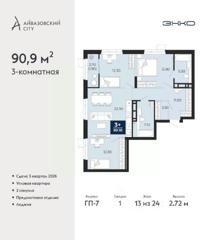 Просторная 3-комн. квартира с предчистовой отделкой в Кварталы "На Минской" на 13 этаже. Общая площадь: 116 кв.м., жилая: 39.7 кв.м., площадь просторной кухни-гостиной: 22.9 кв.м. Квартира угловая, идеально подойдет любителям тишины и панорамных видов. В квартире один балкон и одна лоджия, два совмещенных санузла. Терраса представляет собой роскошную зону отдыха, где вы на свой вкус можете создать атмосферу комфорта и уюта. Высота потолков 2.7 м. Дом монолитный, многоподъездный, переменной этажности, от 7 до 16 этажей. Квартира находится в 1-й секции высотой 16 этажей в корпусе 1. На этаже 8 квартир. В подъезде 2 пассажирских лифта. Окончание строительства - 4 квартал 2026 года. Оформление сделки по договору долевого участия. Квартира с кухней-гостиной и тремя спальнями в кварталах "На Минской". Особенности планировки: гардеробная, лоджия, мастер-спальня, панорамное остекление, постирочная, предчистовая отделка. квартиры в нашей базе: МНС01-Ж1.13.1. В сердце города Кварталы "На Минской" находятся в самом центре. За десять минут можно дойти до площади 400-летия Тюмени и Большого Драматического театра, Тюменского индустриального и медицинского университетов, спортивного комплекса "Строймаш", ТРЦ "Гудвин" и "Премьер", Тюменского технопарка. Поблизости много детских садов, школ и поликлиник. Пространство разного опыта Создавая кварталы "На Минской" мы вдохновлялись Хакскими дворами в Берлине и улицей Давида Агмашенебели в Тбилиси. И первые и вторая — яркие разнообразные пространства, сформированные прогрессивными архитекторами и притягивающие городских интеллектуалов. Престижная недвижимость здесь соседствует с барами, ресторанами, креативными кластерами и бюро, дизайнерскими лавками. Полезные улицы Кварталы "На Минской" свяжет сеть променадов, автомобильных проездов и велодорожек. Уличный фронт проекта мы сформируем с помощью аллейной посадки деревьев. Они создадут тень для ресторанов и кафе на первых этажах, визуально отделят проезжую и пешеходную части, снизят объём пыли и уровень шума. Мы реализуем проект в районе с развитой базовой инфраструктурой. И поэтому тщательно подошли к программированию коммерции, посчитав, что её основная задача — "закрывать" более высокие потребности жителей. Здесь может появиться пекарня с вкусными круассанами, турагентство на случай, если захочется перезимовать в Сочи, массажный кабинет, ресторан, когда надоело есть дома и многое другое. #2W7e68