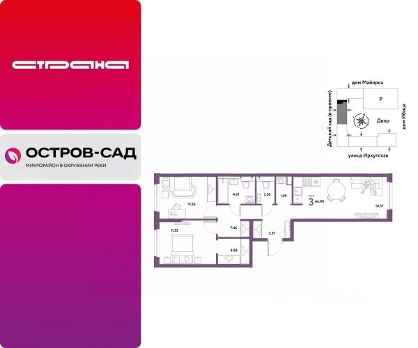 Продаётся квартира площадью 55.1 м2 в жилом комплексе "Айрис". Квартира находится на 14 этаже, жилая площадь квартиры 31.2 м2, площадь просторной кухни — 8.9 м2. Среди особенностей планировки — изолированные комнаты с окнами на одну сторону, 1 совмещённый санузел. Срок сдачи — III кв. 2027 Жилой комплекс "Айрис" — это: - фиджитал-квартал в Тюмени - дома высотой от 7 до 25 этажей - квартиры с системой "Умный дом" - цифровые технологии как элемент благоустройства Окружение В нескольких минутах ходьбы от дома — парк "Комарово" с волейбольной площадкой, открытым кинотеатром, зонами для барбекю и катком. Неподалеку от Airis находится центр иппотерапии, где можно покататься на лошадях и взять уроки верховой езды. На территории Airis появится собственный парк с прогулочными аллеями. Инфраструктура В 5-10 минутах от квартала открыты 2 детских сада и гимназия. На шопинг можно отправиться в торговые комплексы "Колумб" и "Кристалл" — они находятся недалеко от дома. Благоустройство Уютный двор — приватное пространство для жителей. В беседках можно будет почитать книгу в тишине, а в тени деревьев устроиться на пикник. На крыше многоуровневого паркинга будет лаунж-зона с кинотеатром, баскетбольная площадка и воркаут-пространство, где можно позаниматься с виртуальным тренером — достаточно отсканировать код. Лобби Интерьеры лобби выполнены в пастельных тонах с элементами фиджитал-решений. Для отдыха и ожидания гостей создана лаунж-зона. Также есть гостевые санузлы. Колясочные Возвращайтесь налегке после прогулки с малышом — оставить коляску можно в специальном помещении на первом этаже. Кладовые Для сезонных и габаритных вещей предусмотрены отдельные кладовые на цокольном этаже. В каждом помещении уже проведено электричество и выполнена стяжка пола. Паркинг На территории — два многоуровневых наземных паркинга. Один из них примыкает к домам — из него можно напрямую пройти в парадные. Планировки Планировки квартала — от компактной студии до сити-хауса с собственным палисадником — соответствуют любым жизненным сценариям. Можно выбрать квартиры с террасами и готовыми дизайнерскими интерьерами.